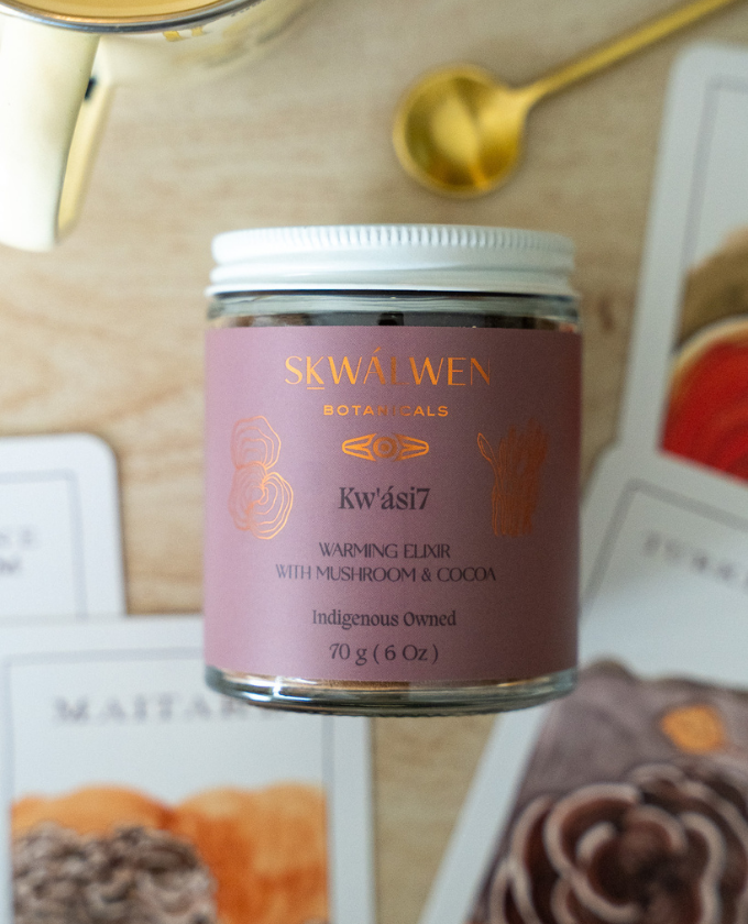 Today, Sḵwálwen (skwall-win) is an Indigenous skincare line that honors Skwxwú7mesh (Squamish) plant knowledge and ancestral traditions by using sustainably harvested and sourced organic plants to balance, renew, repair, strengthen, hydrate and protect the skin. Sḵwálwen is the Squamish word for heart. Each product has a Squamish name to honor the place where this plant knowledge comes from.